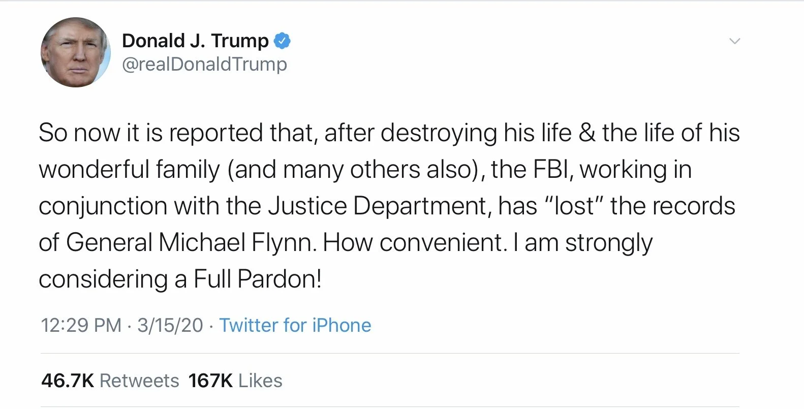 “DOJ Sought Continuance Of @GenFlynn Cast to “Vindicate” Public Reputation of His Former Legal Team.”
