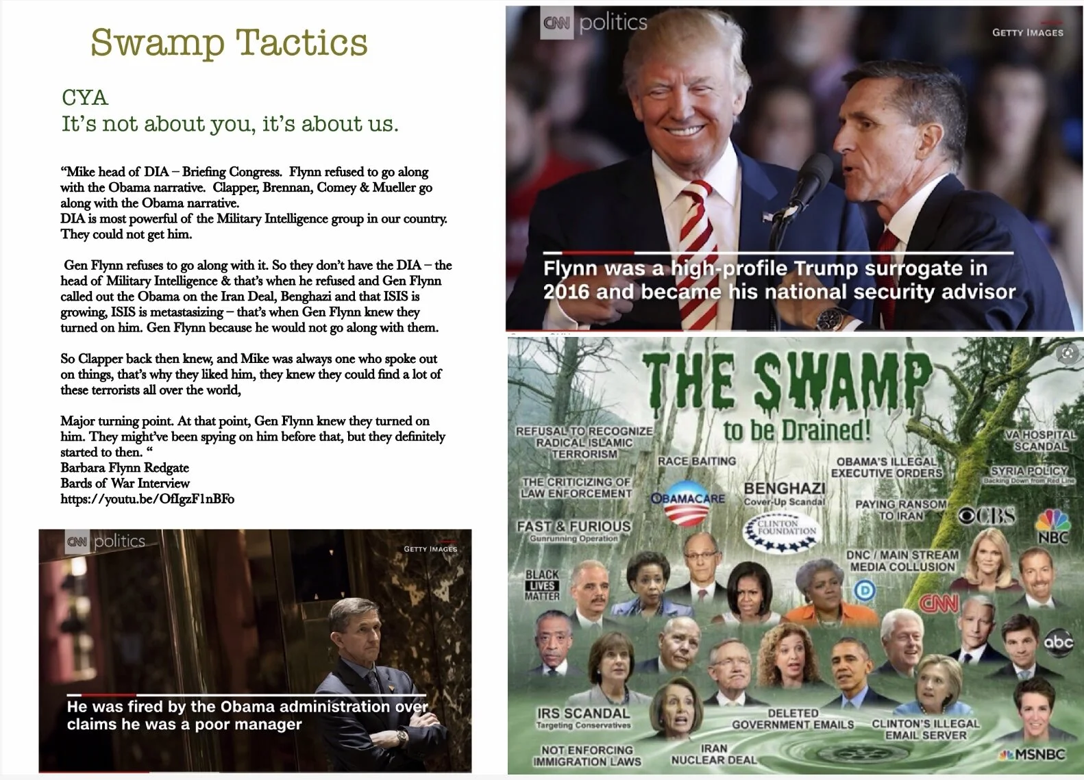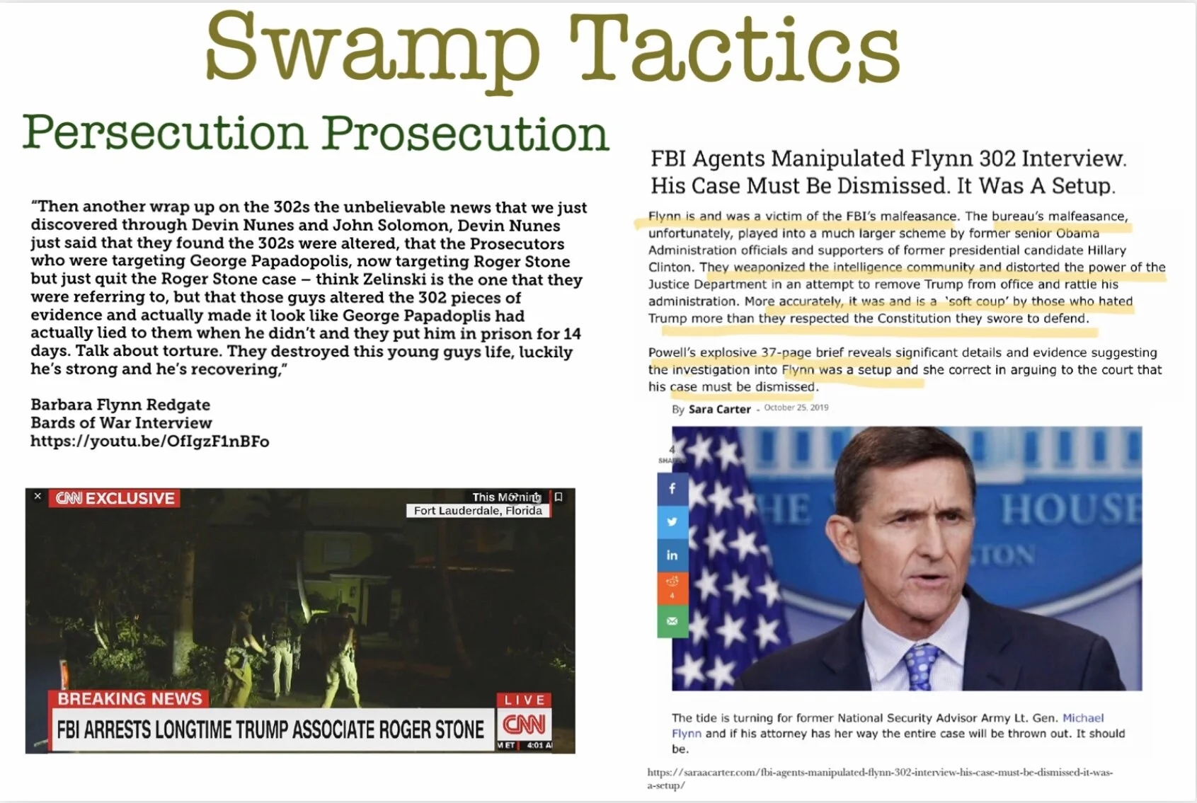As I listened to @BarbaraRedgate on @BardsOfWar interview, I took notes to outline #SwampTactics used against @GenFlynn, & also @realDonaldTrump, Roger Stone, Robyn Gritz @vabelle2010, & others. Whistleblower @cain_nate on @BardsOfWar